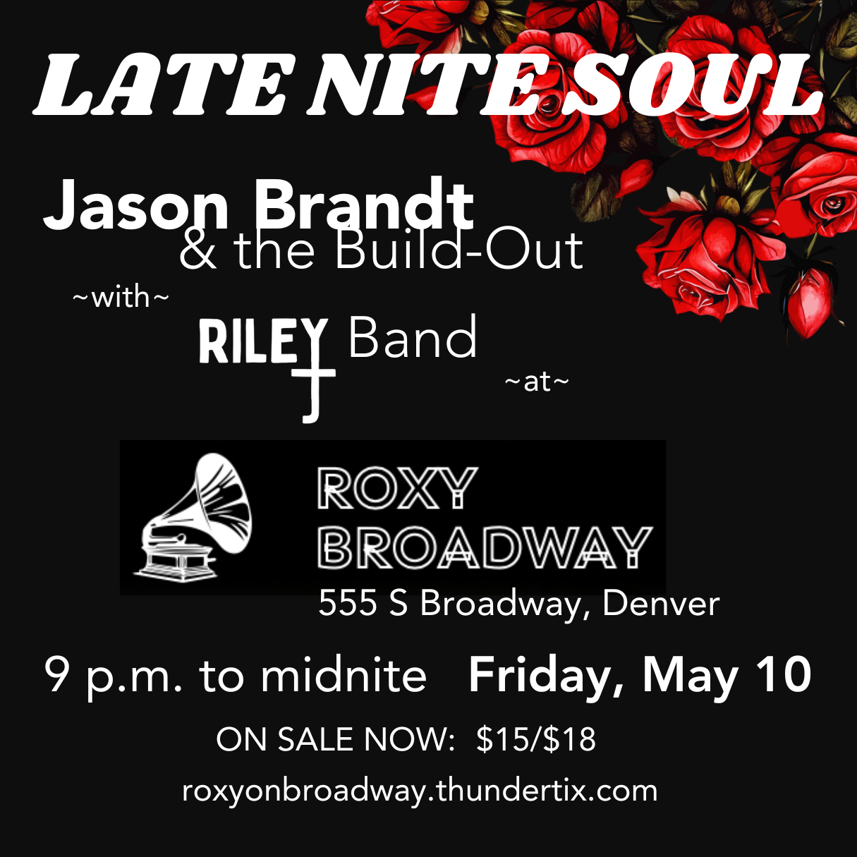 Jason Brandt & the Build-Out will perform a two-hour late set at Roxy on Broadway in Denver with Riley J Band opening. This is the first time we’re bringing the full band to Roxy, so don’t miss the good food and the great drinks, and come to support local music and new opportunities! If all goes well, we’ll be returning in the fall. Tickets are $15 pre-sale, $18 day of. Purchase online at roxyonbroadway.thundertix.com.