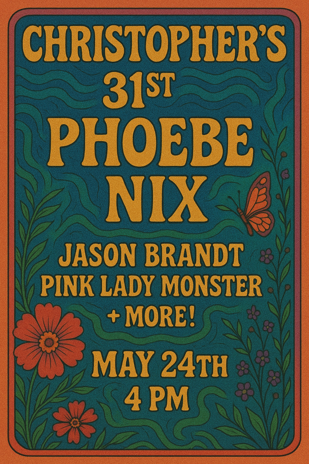 It’s a semi-private house party show for leader of Phoebe Nix, Chris Clauss, who’s turning 31! Jason Brandt and Pink Lady Monster will open for Phoebe Nix, and I imagine we’ll have some jams and sit-ins, but don’t catch me lyin’! Holler if you wanna know where the location is…
